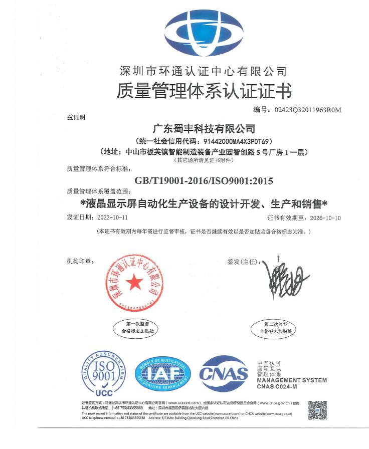 質(zhì)量管理體系認(rèn)證證書
